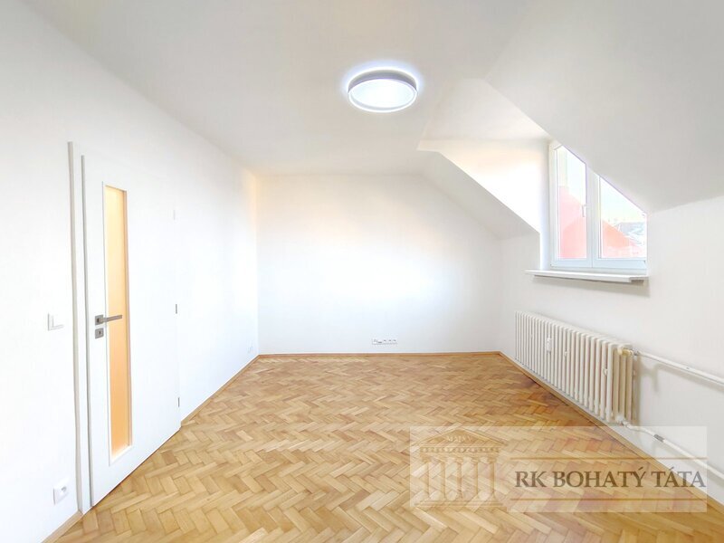 Pronájem krásného podkrovního bytu 2 + 1 o rozloze 54 m2 se nachází ve 5. NP cihlového domu bez výtahu. Byt právě prošel čerstvou kompletní rekonstrukcí, bude jako nový včetně všech rozvodů a poskytne příjemné bydlení v hezké a klidné lokalitě v blízkosti Nám. 17. listopadu nebo zimního stadionu. Dispozici tohoto příjemného bytu tvoří ložnice na pravé části, obývací pokoj na levé části a uprostřed nich nová kuchyň s pěknou novou kuchyňskou linkou s myčkou, krásná nová koupelna se sprchovým koutem a toaletou a chodba. Byt se pronajímá nezařízen, náleží k němu dva sklepy. Majitelé žádají zájemce bez zvířat. Bydlení zde mohu doporučit pro jeho dobrou lokalitu, vynikající dobrý stav a blízkost přírody v pěší vzdálenosti. V případě zájmu více informací, nebo prohlídky, kontaktujte prosím makléře.